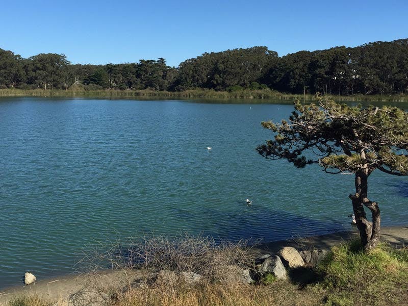 The Corona Heights Dog Park is just over 20 miles north of El Granada, in the Corona Heights neighborhood in central San Francisco. This dog park is over 10 acres, and it's situated on a hill, so you and your dog will both get a good workout exploring it. There is also an area of the park with a steep rocky incline, and adventurous dogs often like to climb it. There are also walking paths and sports fields in the park, but your dog should be leashed in other areas. You may not be able to see the Golden Gate Bridge from this park, but it does offer scenic views of several other special San Fran spots.36
