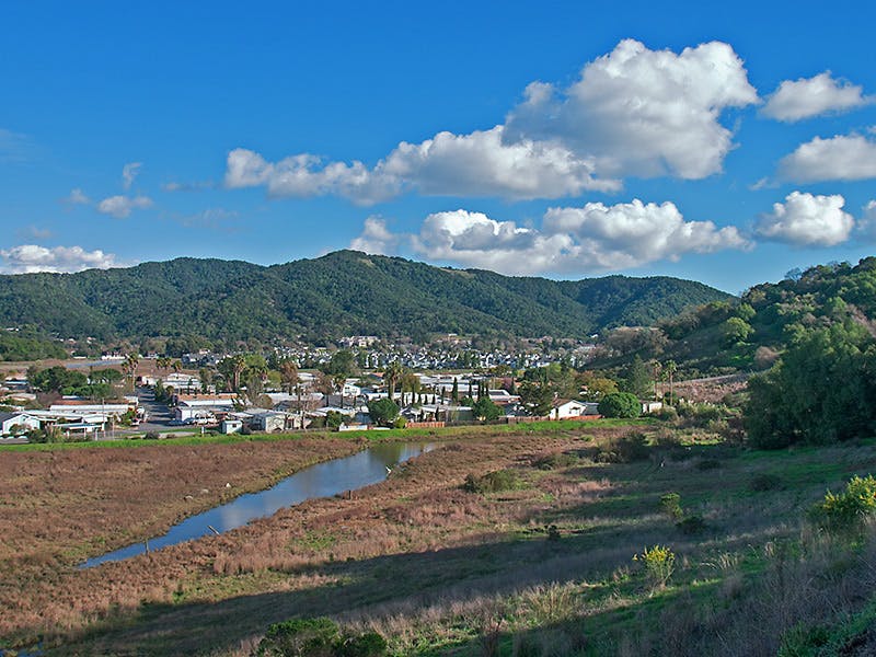 Santa Venetia is located 2.5 miles north of San Rafael. It offers locals several dog friendly activities to choose from, including a visit to beautiful Lagoon Park. This natural wonder spans 10 acres and surrounds a manmade lagoon that makes it the perfect destination for walking and playing with your pup! For a more structured outing with your dog, you can visit the lagoon’s Civic Center Dog Park on the premises. It is a fenced in, off-leash park that includes a kiddie pool, running water, and donated tennis balls you can use to play fetch with your pooch!