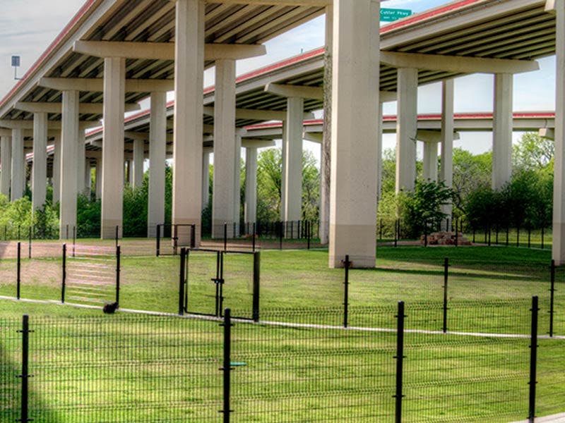 Bush Central Barkway is a very punny name for this off leash dog park. Located near the parkways almost as far north as Plano, Creekwood Apartments has to make use of every block it’s got. Dedicating space to canines wasn’t done lightly, and they’ve pulled out all the stops to make this park a success. There are three areas: one for large dogs, one for small dogs, and one for slow, elderly, or disabled dogs who need to be with other low activity pups. There are shade trees, soft turf, and a paved walkway. There’s even a doggie drinking fountain!